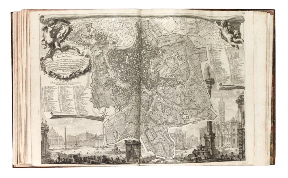 Il grande incisore ed architetto Giovanni Battista Piranesi, tra le star della vendita, è stato assai conteso in asta: tutte le sue opere hanno duplicato e triplicato le stime iniziali e nella classifica dei primi 10 lotti dell’asta, Piranesi è presente ben 3 volte. Il celebre “Campo Marzio dell’antica Roma” (lot 248), con monumentale mappa dello stesso, da una stima di € 10.000-15.000 è stato acquisito a € 32.500.