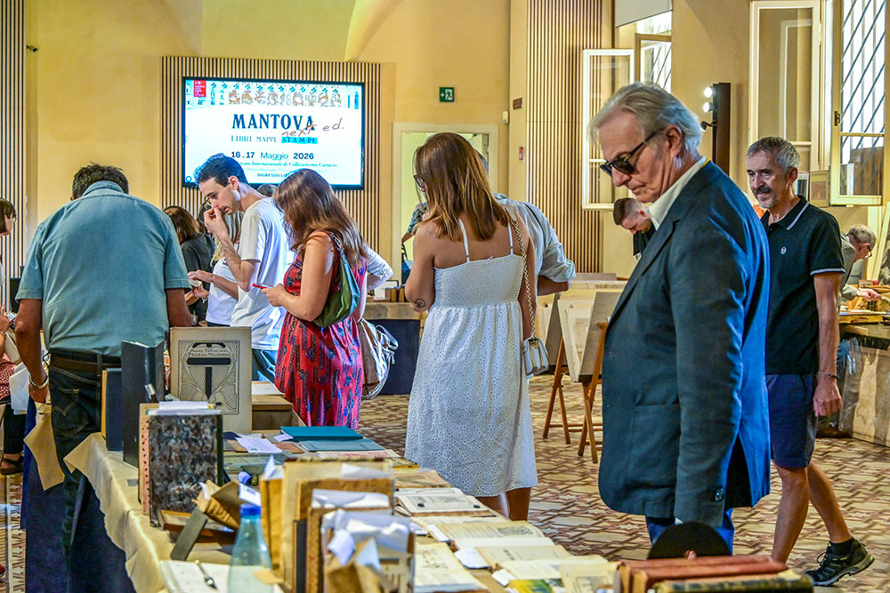 “Mantova Libri Mappe Stampe” è la prima mostra mercato di antiquariato librario e collezionismo cartaceo in Italia. La manifestazione, curata da Elisabetta Casanova, è organizzata con il patrocinio del Comune di Mantova e dell’associazione Roberto Almagià, in collaborazione con il Museo Diocesano Francesco Gonzaga e l’associazione Mirabilia.